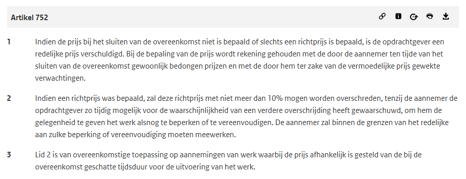 Niet iedere mededeling in het kader van de prijs heeft het karakter van een richtprijs. Uit art. 7:752 lid 1 BW volgt dat bij het bepalen van een redelijke prijs rekening wordt gehouden met de door de aannemer ter zake van de vermoedelijke prijs gewekte verwachtingen.